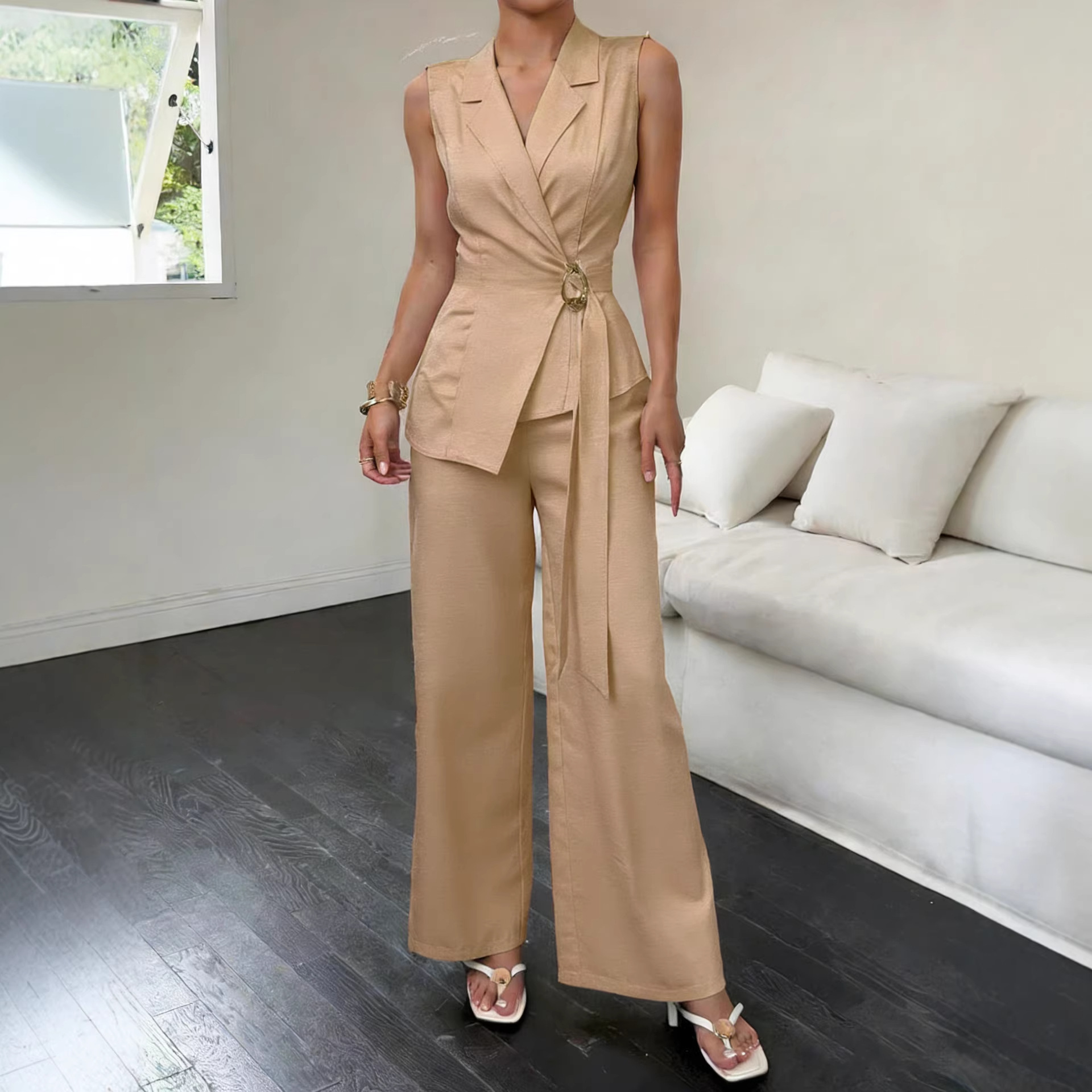 跨境独立站2026欧美亚马逊女夏季西装外套背心阔腿裤套装高级感