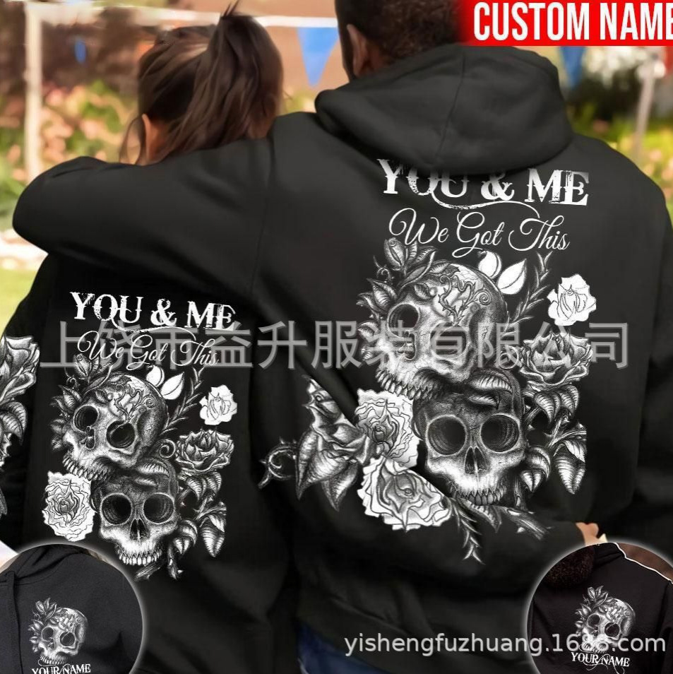 2025秋季新款亚马逊欧美外贸跨境卫衣情侣休闲骷髅3D数码印花卫衣