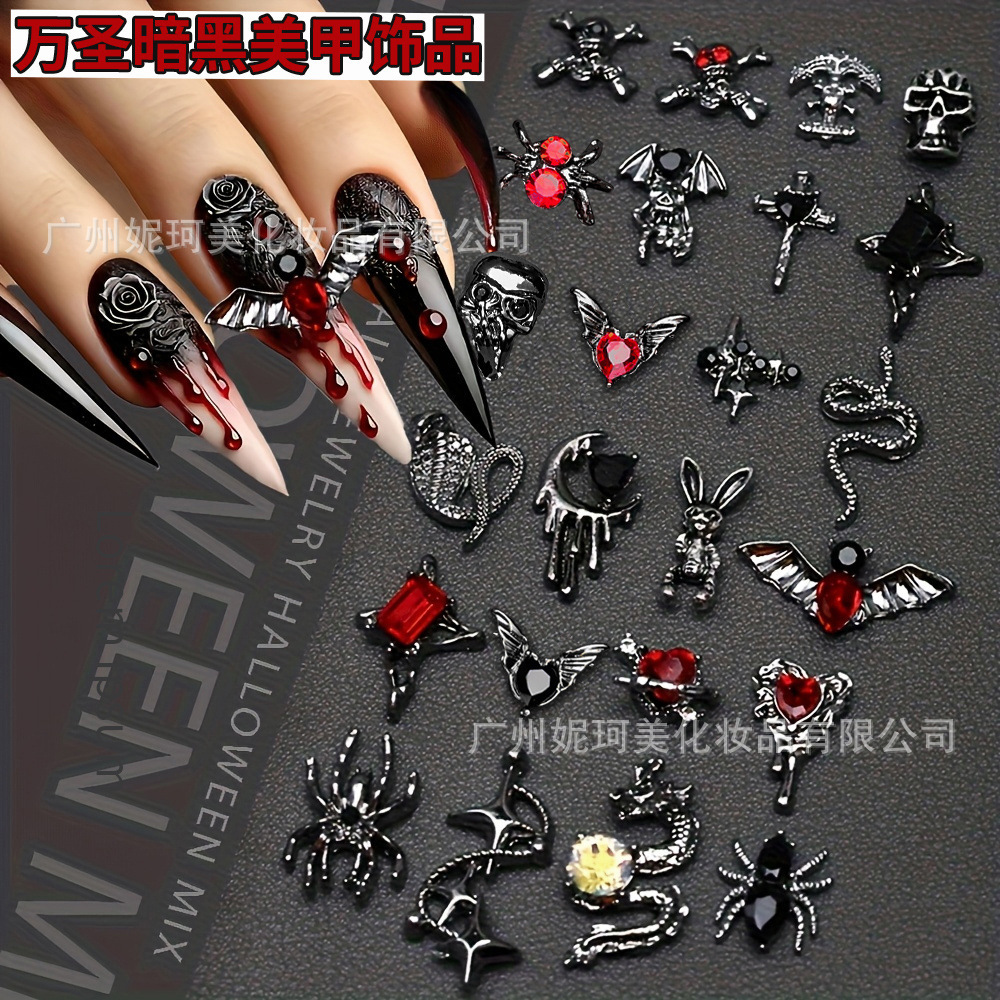 复古暗黑风美甲饰品骷髅万圣节克罗心十字架星芒合金钻指甲配装饰