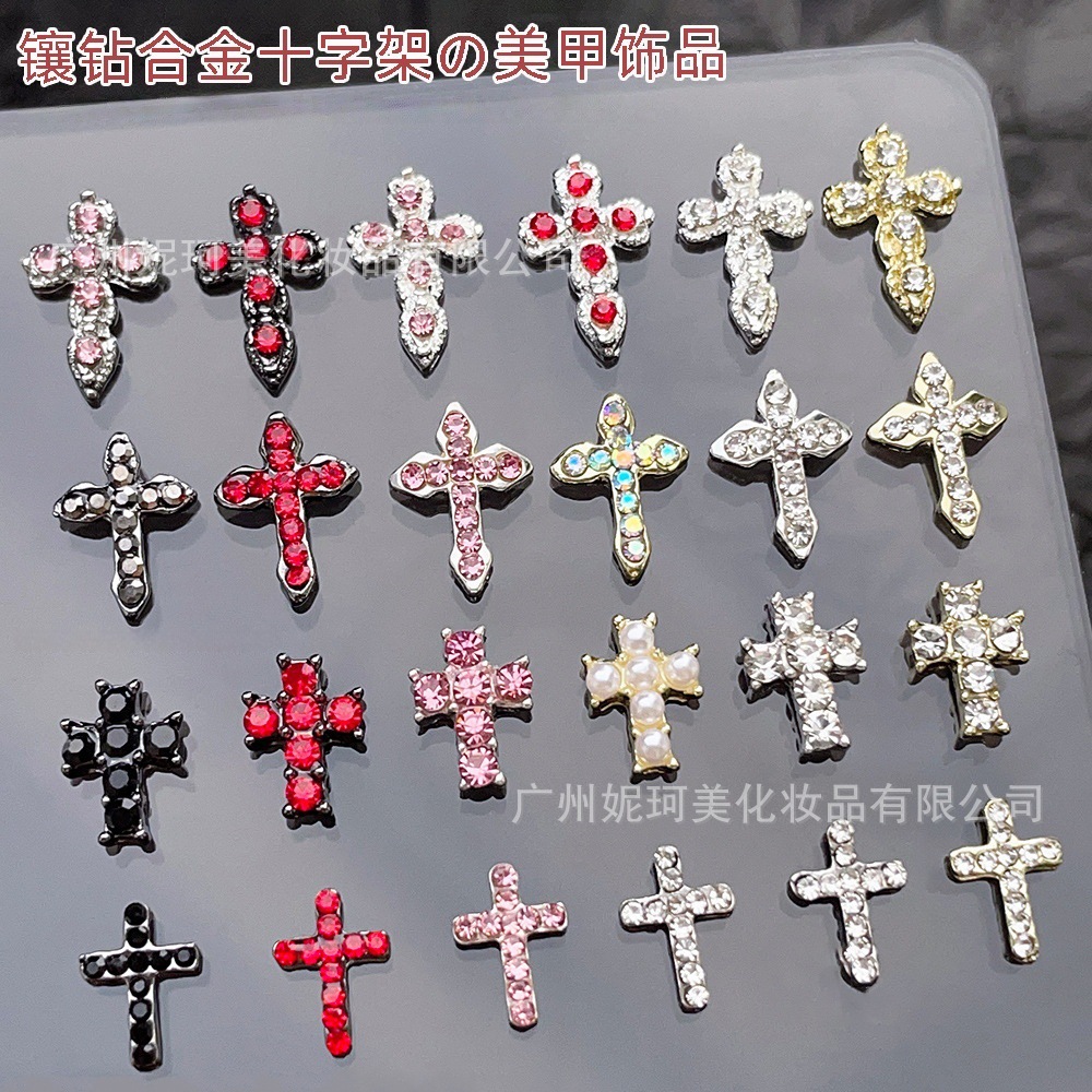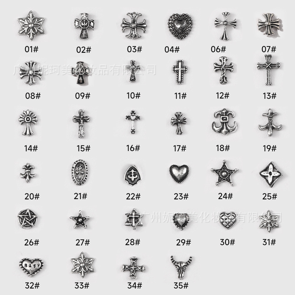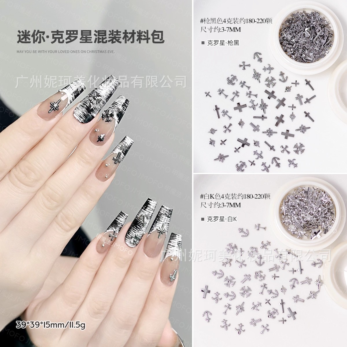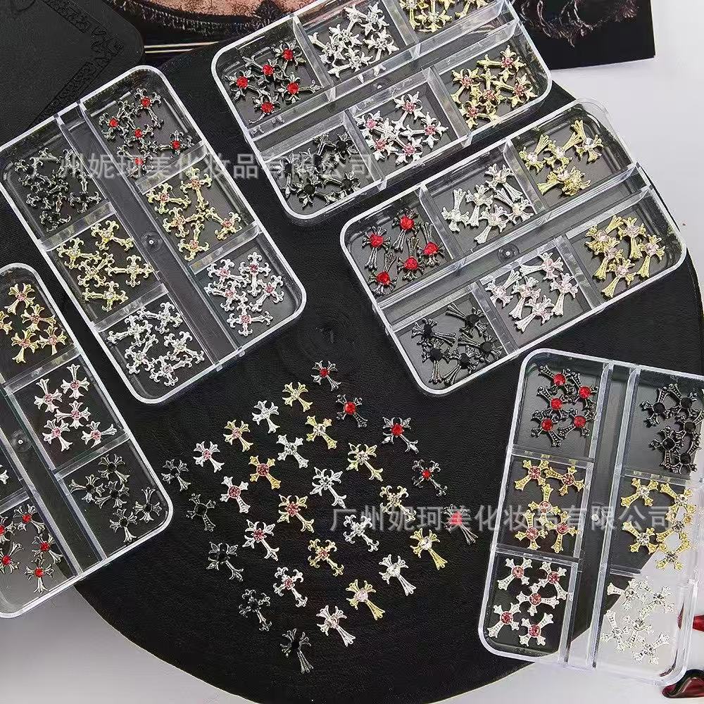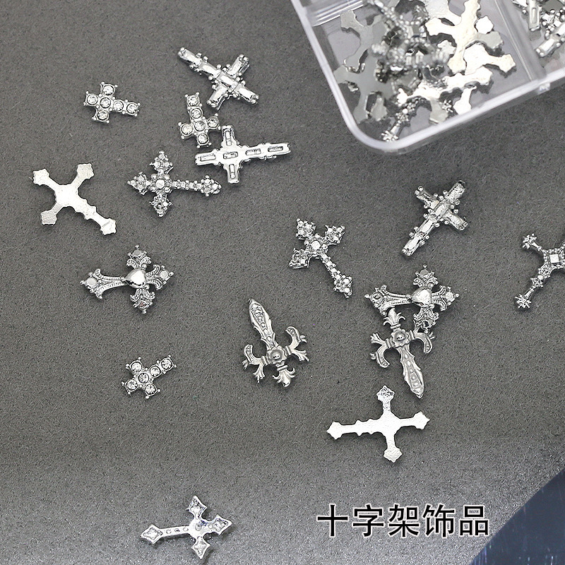 克罗心美甲饰品混盒装金属银色十字架暗黑风穿戴指甲钻装饰小配件