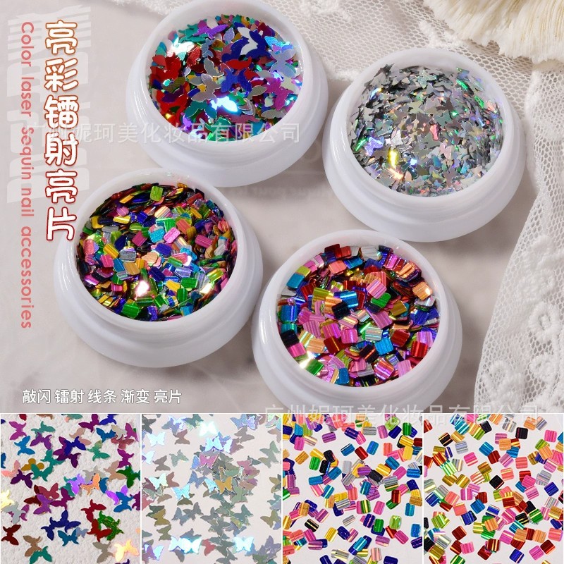 美甲彩色亮片长方形极光镭射小蝴蝶贴片2025新款指甲装饰品