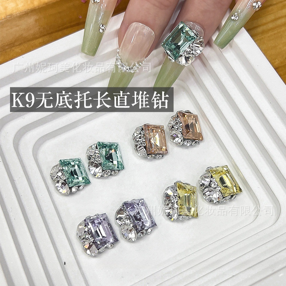 新款K9美甲堆钻饰品无底托轻奢百搭长直角水晶紫美甲钻球配饰成品