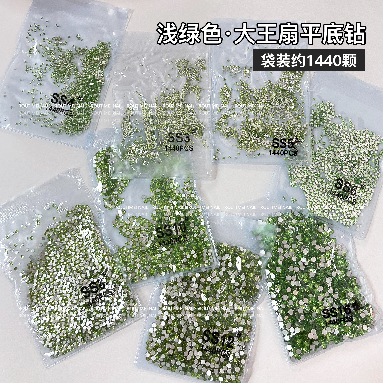 浅绿色多尺寸大王扇平底钻指甲钻饰袋装1440颗爆闪百搭小红书爆款