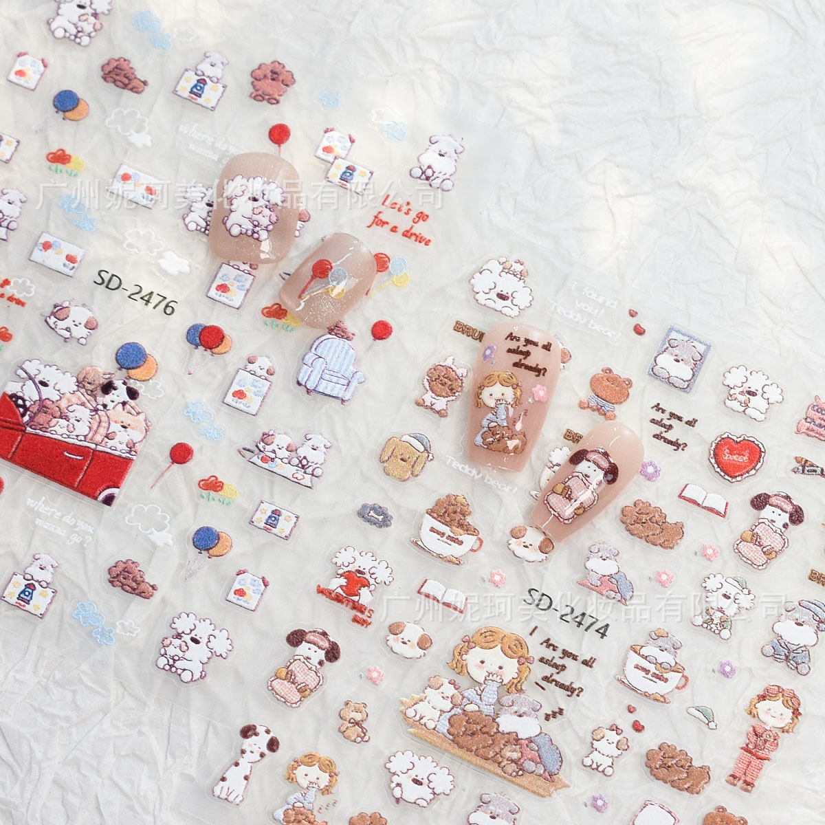 可爱小狗美甲贴纸浮雕tomoni涂鸦卷毛狗狗卡通汪汪指甲装饰贴纸