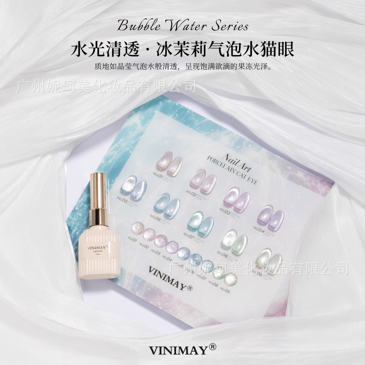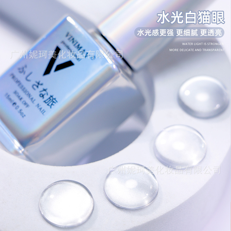 VINIMAY新款猫眼甲水光白猫眼胶透底陶瓷白猫眼爆闪白钻石猫眼胶