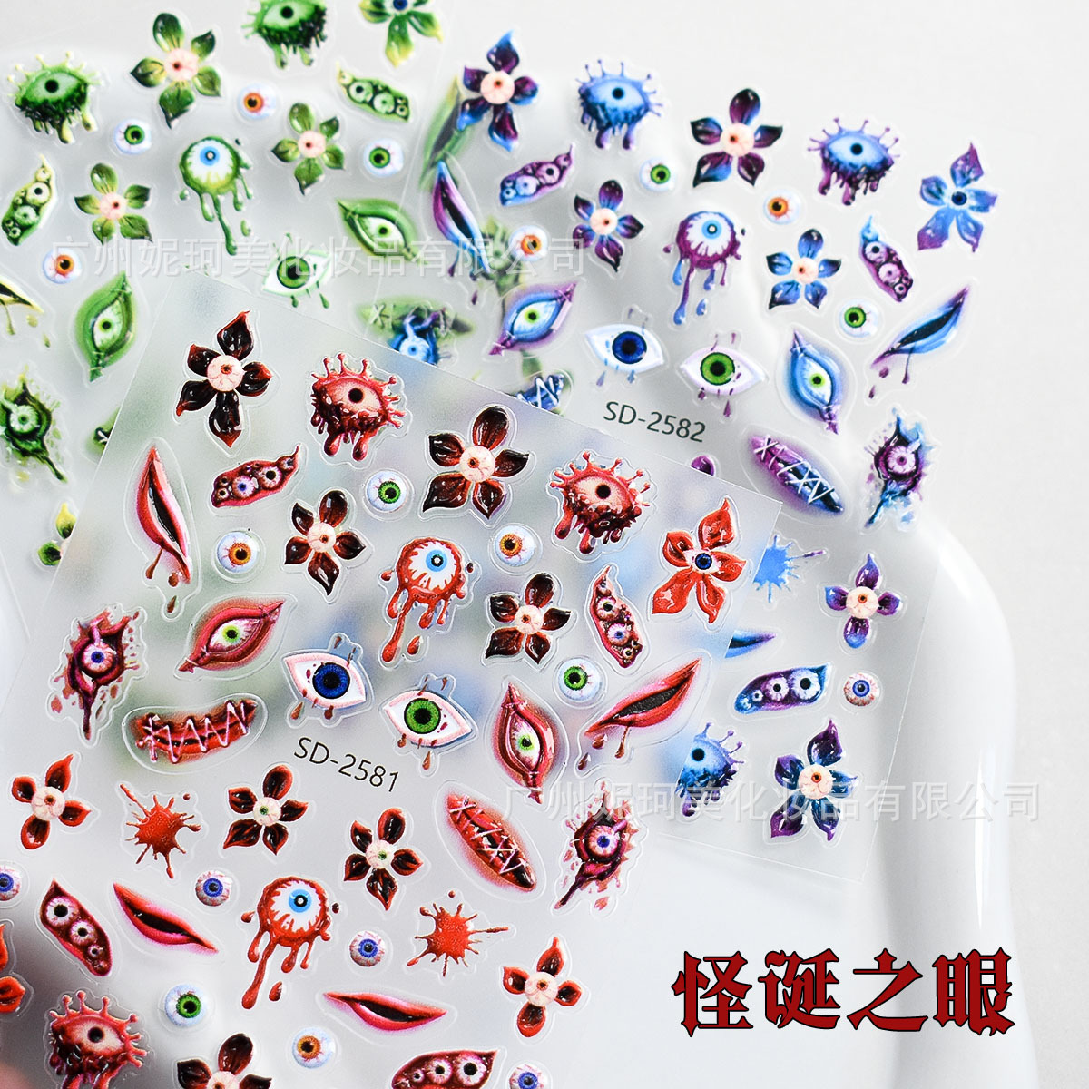 暗黑风怪诞之眼美甲贴纸新款万圣节怪诞之眼小图案背胶SD2581款