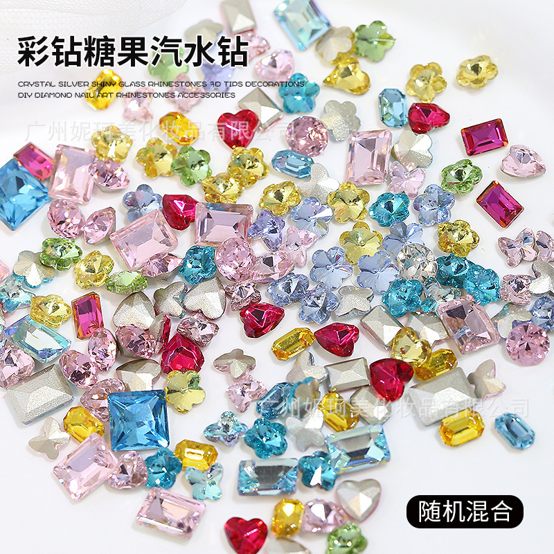 网红混款糖果汽水美甲彩色钻尖底异形大钻水晶冰糖爱心指甲装饰品