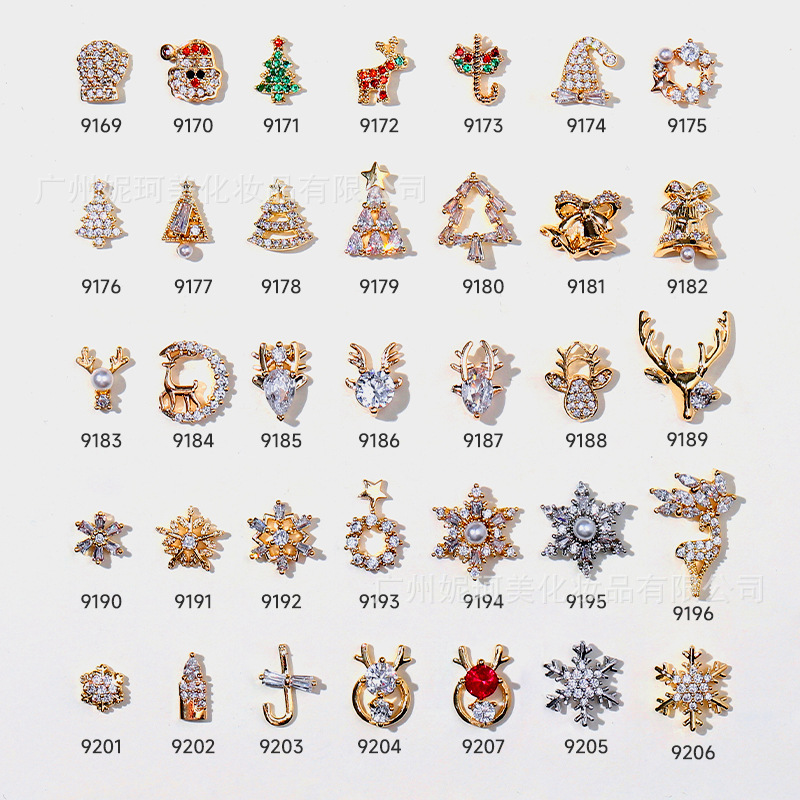 新款圣诞精致花环蝴蝶结合金美甲饰品超闪镶钻珍珠指甲装饰贴批发