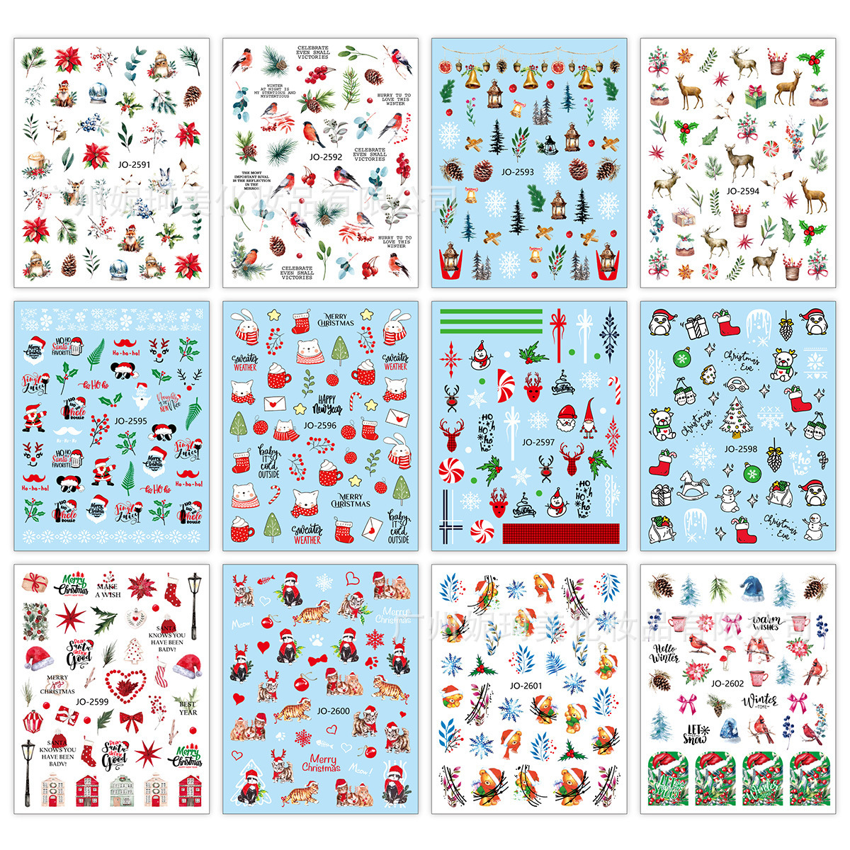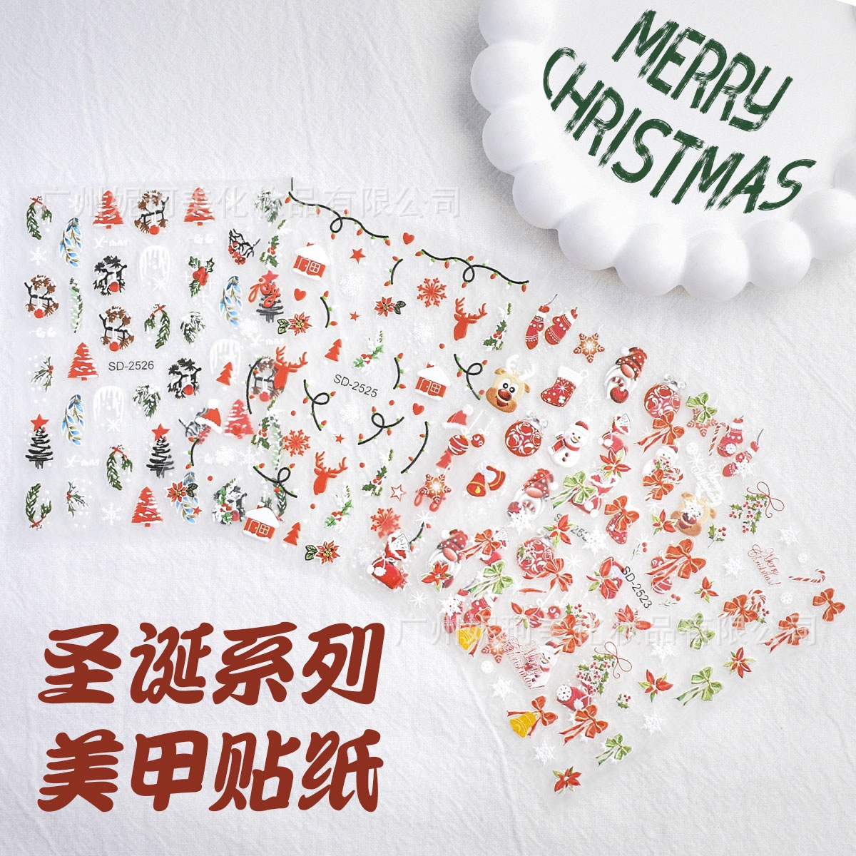 跨境美甲贴纸雪花圣诞树可爱麋鹿烫金圣诞系列指甲贴纸SD2515