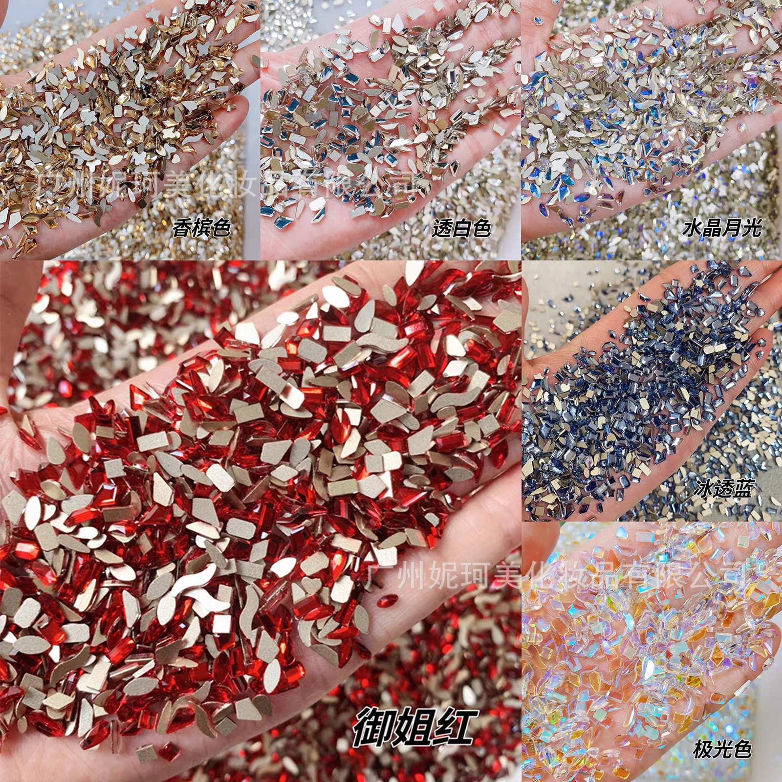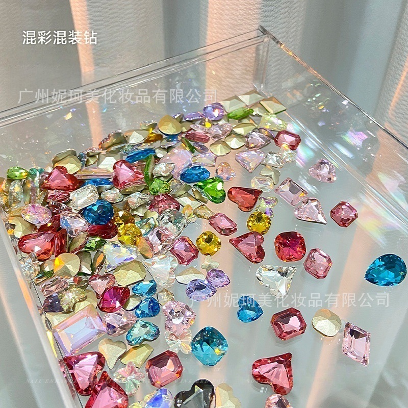 广州美甲钻混装迷你小号美甲平底异形钻混装k9香槟色美甲饰品批发