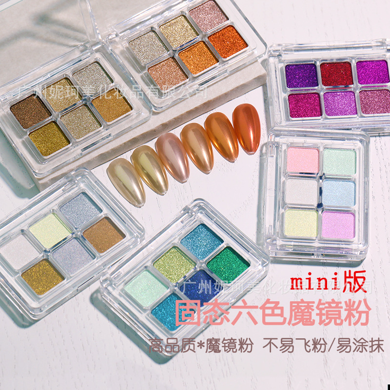 跨境美甲6色固态魔镜粉电镀色眼影盘镜面粉闪粉仙女粉极光粉批发