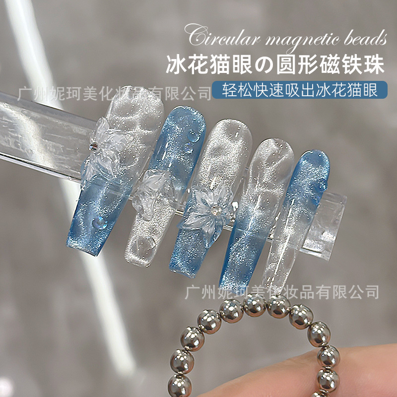 网红美甲吸铁石爆款圆形猫眼磁力珠强力波光粼粼冰花美甲钢珠磁铁