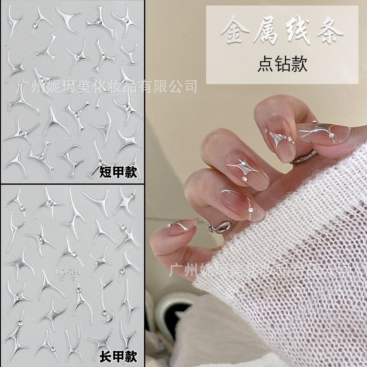 ins风甜酷百搭金属质感点钻美甲贴MO小红书金属线条点钻美甲贴纸