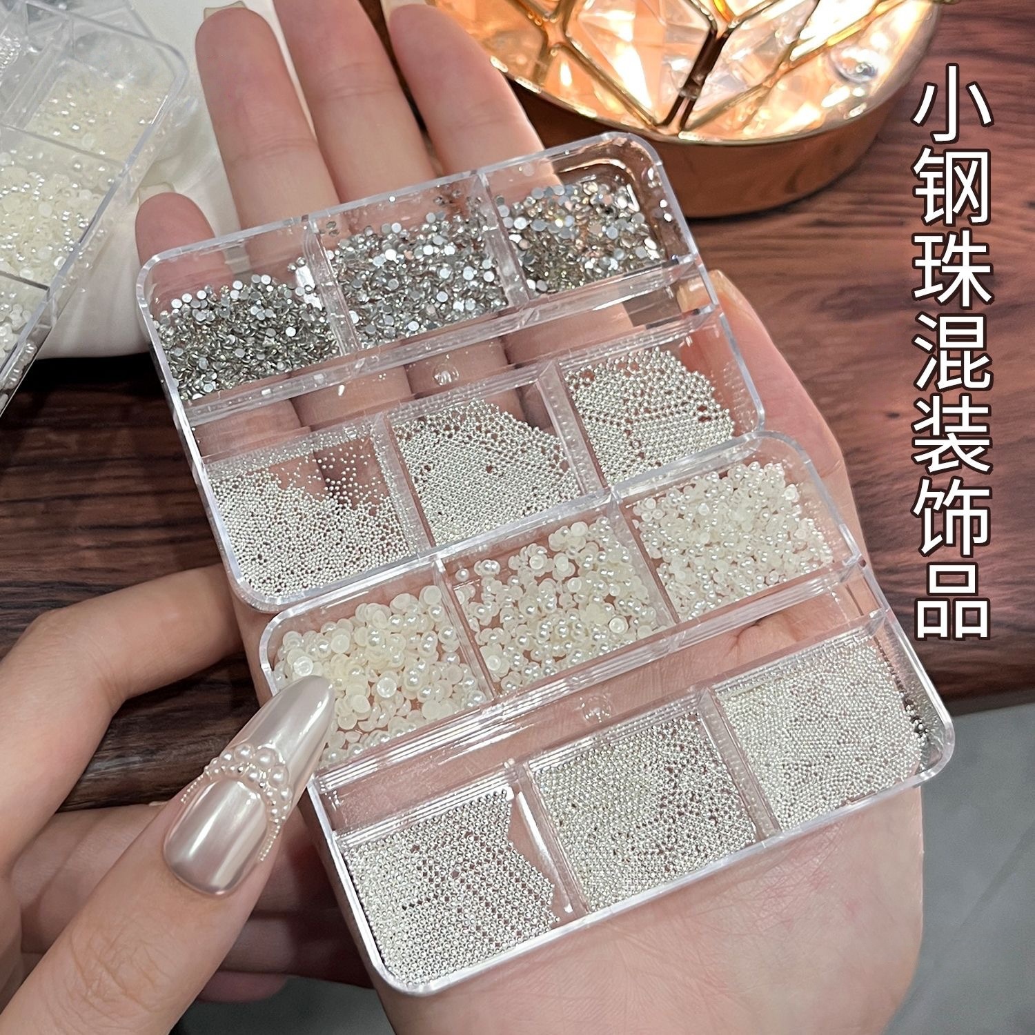 美甲质感迷你珍珠钢珠饰品高品高亮6格混装指甲平底小圆钻不掉色