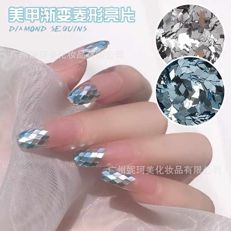 新款网红海洋菱形美甲亮片人鱼蓝渐变美甲博主热荐款光疗指甲配饰