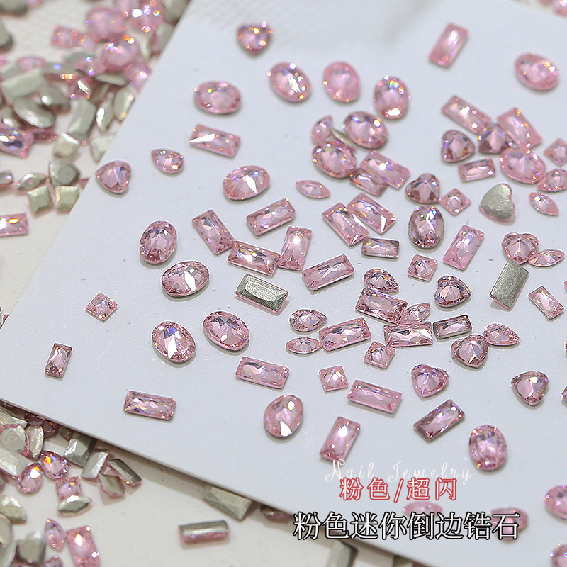 粉色迷你倒边锆石美甲饰品批发混装爆闪马眼爱心长方小号指甲钻