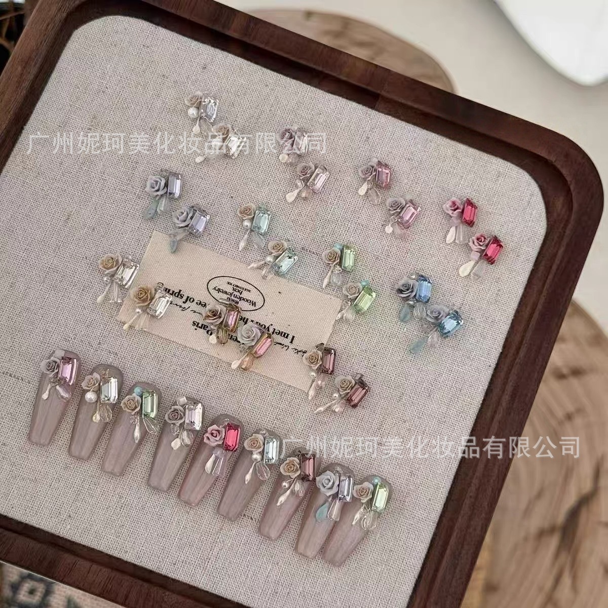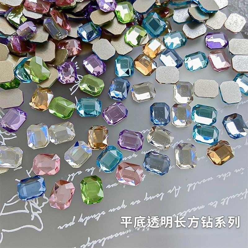 美甲饰品网红新款彩色混装冰糖锆石小长方平底异形钻石指甲装饰品