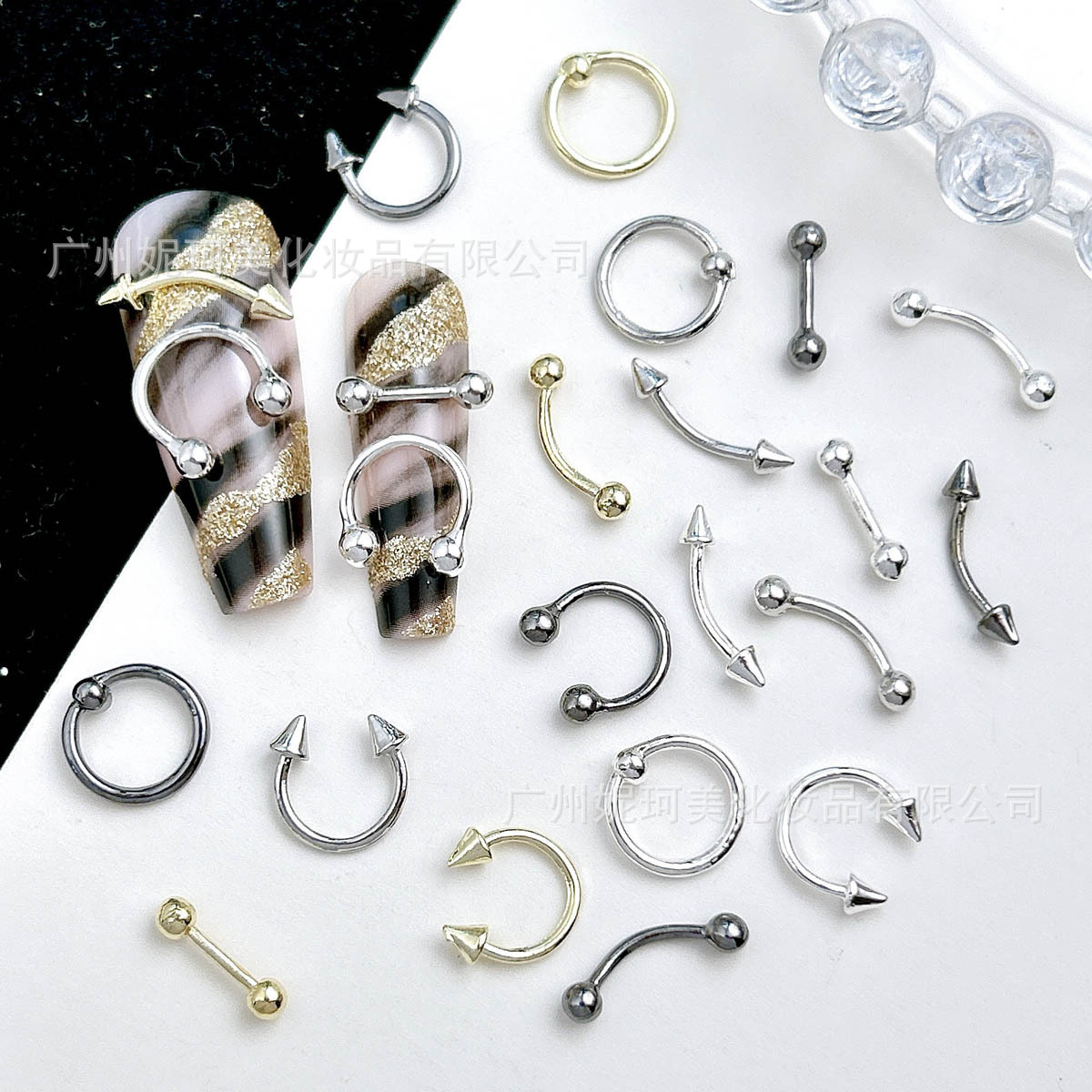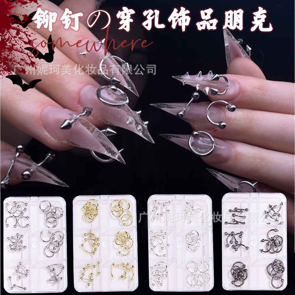 美甲穿孔铆钉饰品辣妹朋克风金属打孔钉子吊环diy穿戴指甲钻配饰