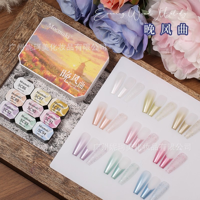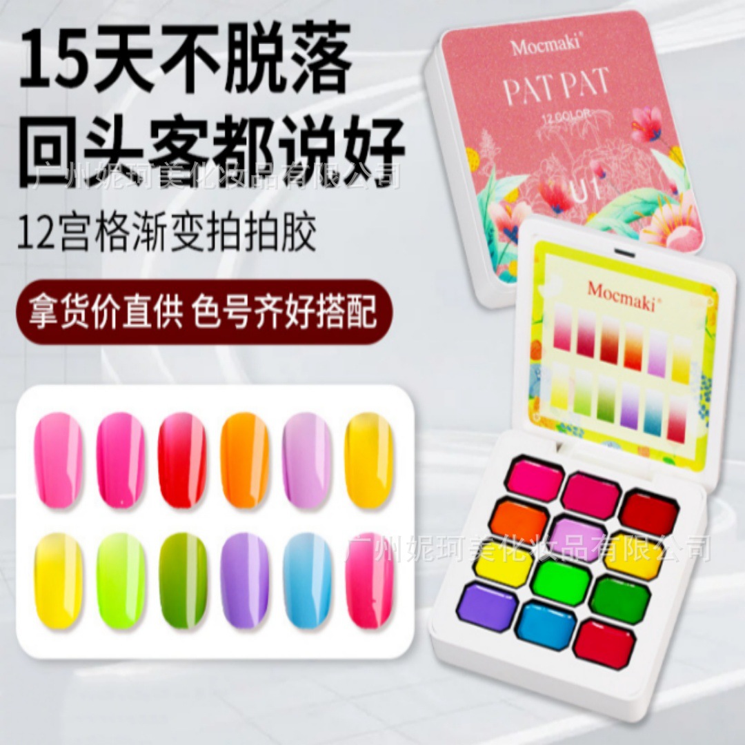 9色绸缎胶九宫格缎光拍拍胶美甲免洗彩绘胶晕染转印固态甲油胶