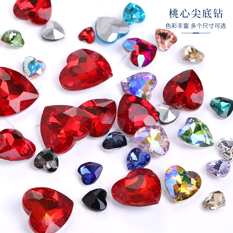 网红爆款尖底桃心钻水晶玻璃钻手机贴钻服装发带配件饰品钻爱心钻
