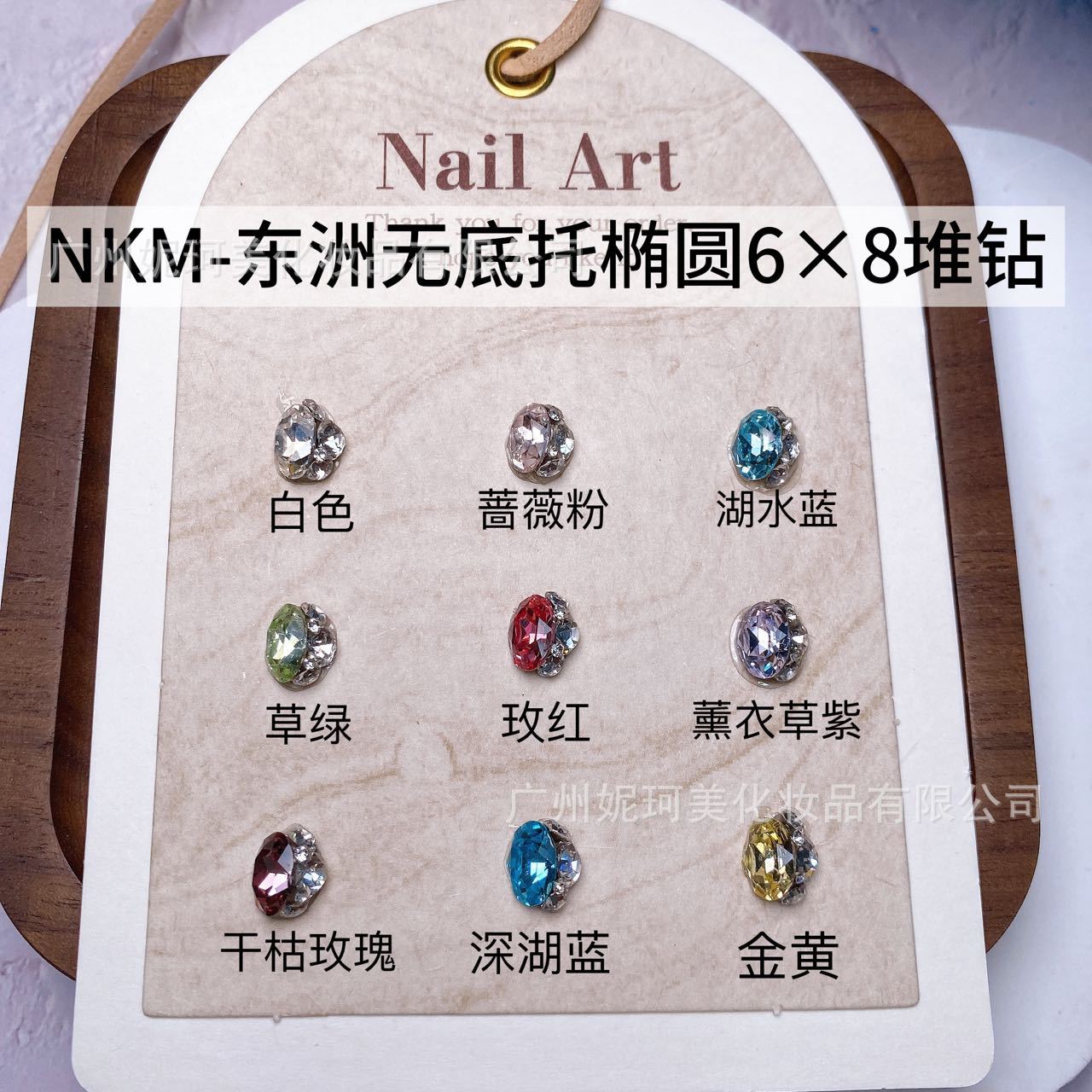 无底托K9鸽子蛋堆钻美甲饰品椭圆玫红粉蓝紫色成品手工堆钻配饰