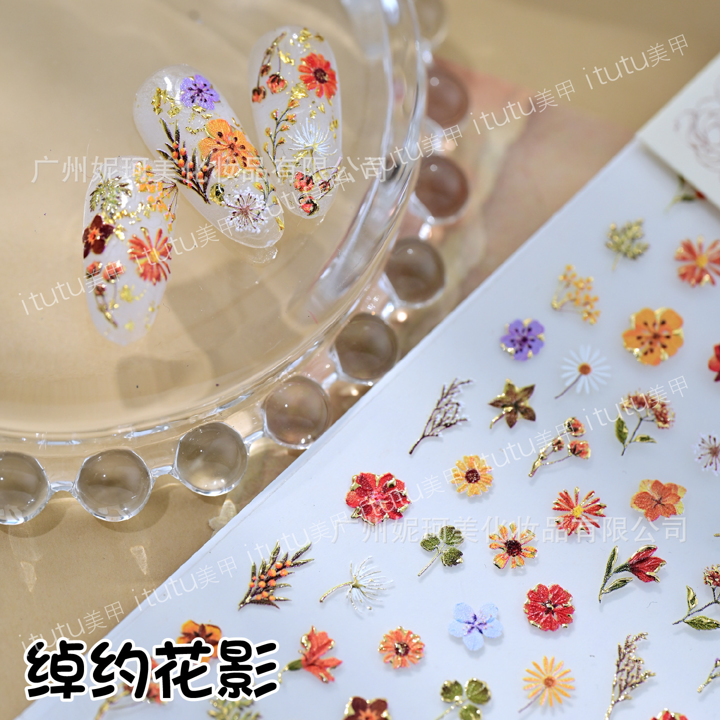 itutu新款美拉德花卉美甲贴纸小雏菊满天星干花小碎花秋天花花贴