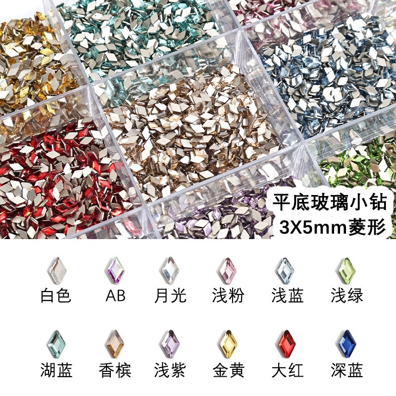 美甲钻饰3x5mm小菱形美甲饰品迷你彩色平底钻K9菱形玻璃钻DIY配饰