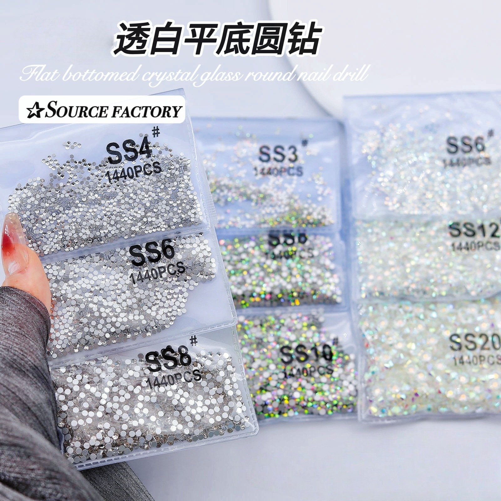 银底1440颗美甲平底水钻不掉底奥钻白色AB透明圆形玻璃钻装饰品