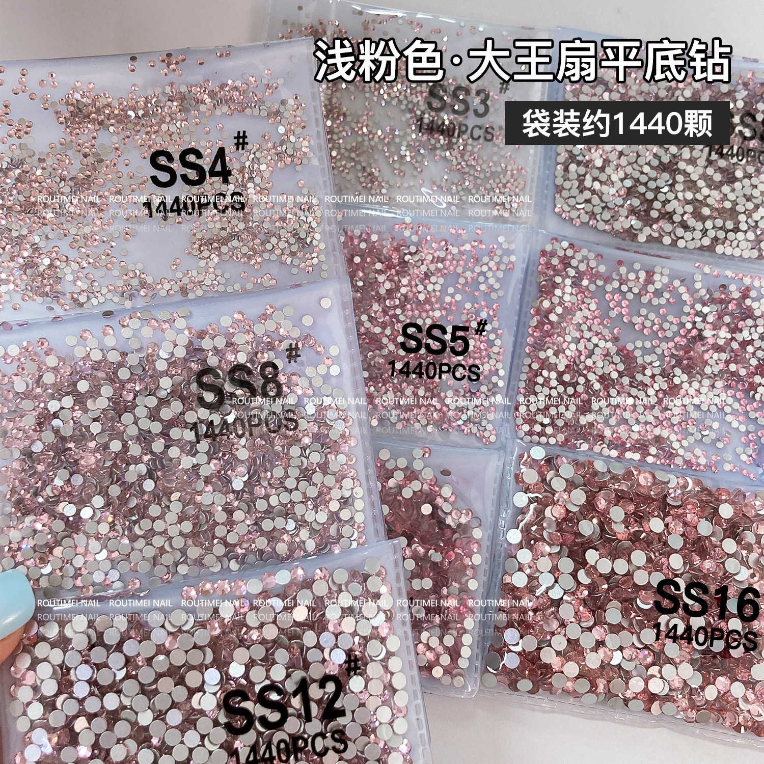 浅粉色多尺寸大王扇平底钻指甲钻饰袋装1440颗爆闪百搭小红书爆款