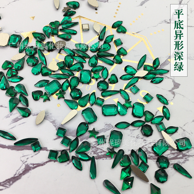 美甲平底异形钻混装温同款平底异形深绿孔绿色网红美甲钻