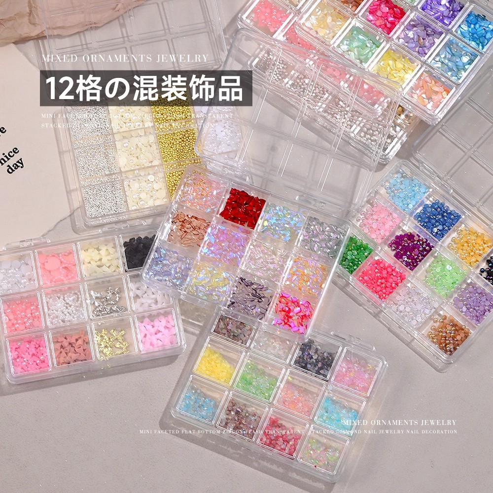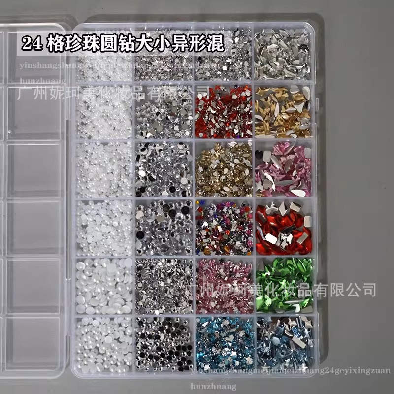美甲饰品小号平底异形钻彩色混装珍珠24格树脂钻指甲穿戴甲配饰钻