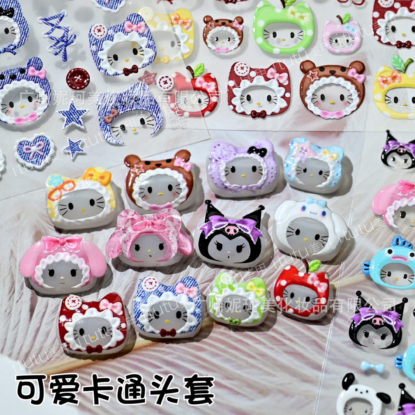 可爱豹纹卡通头套浮雕美甲贴纸高颜值卡通猫指尖小图案贴MO款657