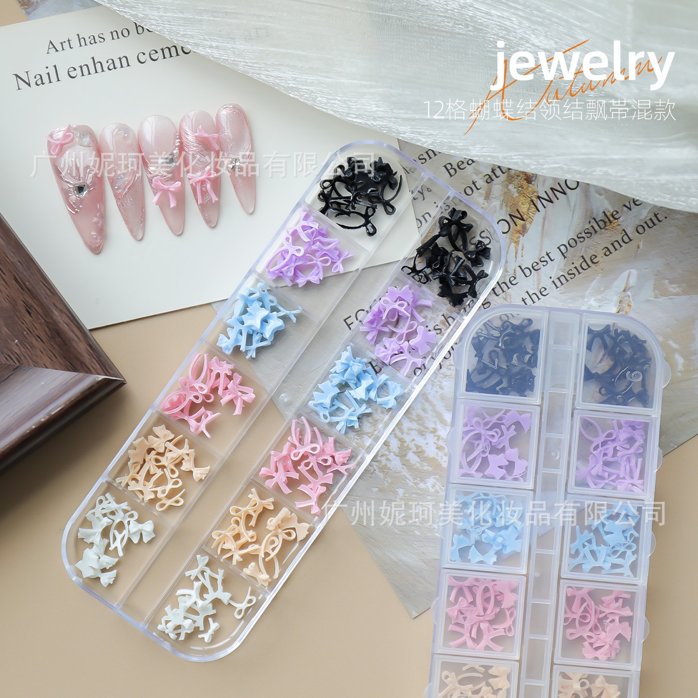 新款12格蝴蝶结美甲饰品混装锆石珍珠材料包平底异形钻指甲装饰品