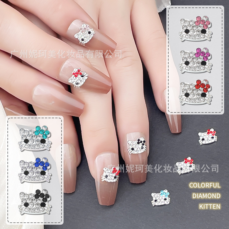 跨境新款美甲饰品猫可爱猫合金镶钻立体猫咪卡通金属指甲配饰批发
