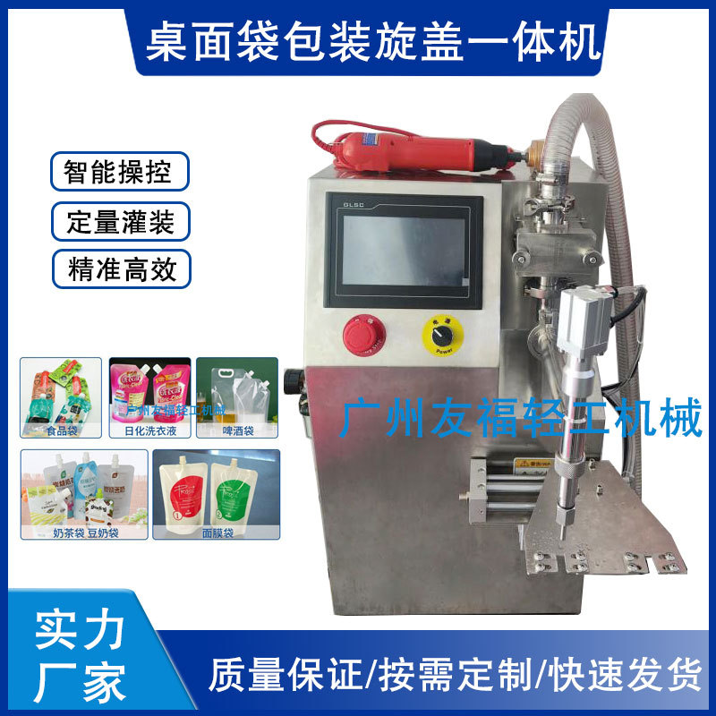 桌面袋子包装旋盖一体机面膜袋食品袋吸嘴中药罐装机伺服灌装机