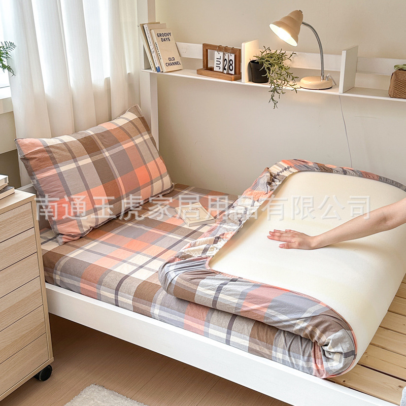 纯棉日式学生宿舍床笠水洗全棉床垫套90x190单人褥子套床单三件套