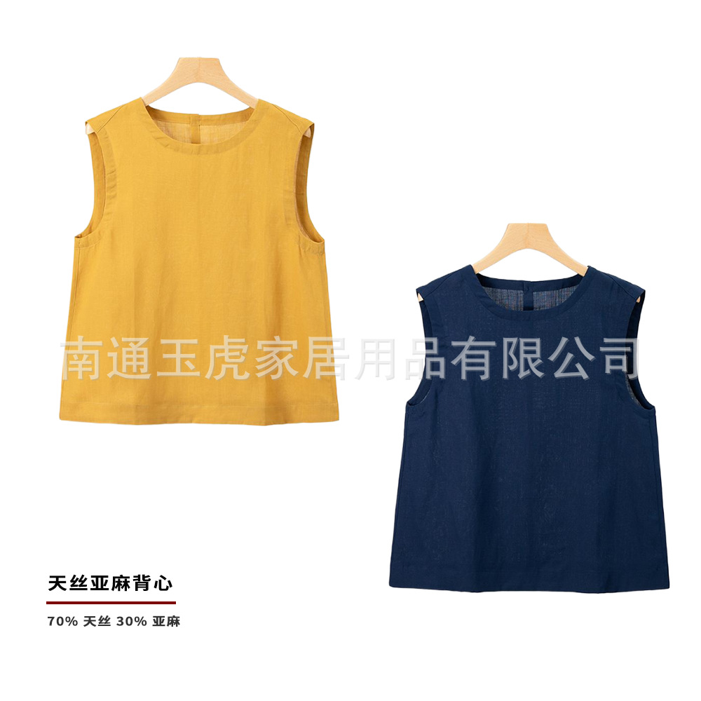 良品高级感简约亚麻天丝无袖衬衫女夏季70%天丝30%透气背心纯色