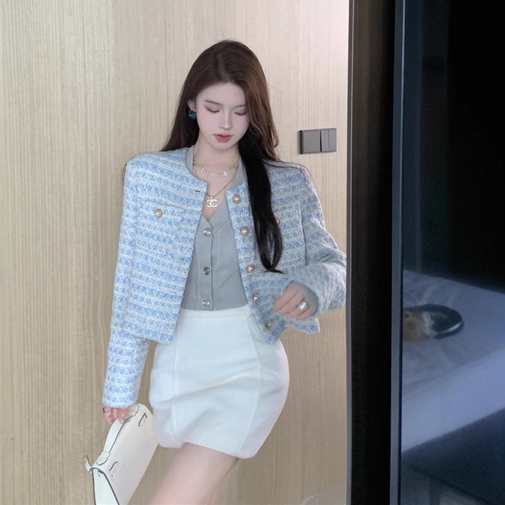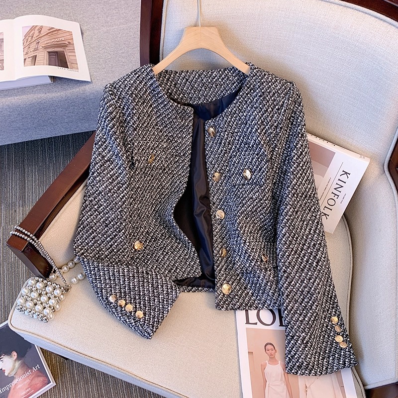 跨境春秋季新款法式高端设计感休闲百搭时尚小香风圆领外套女批发