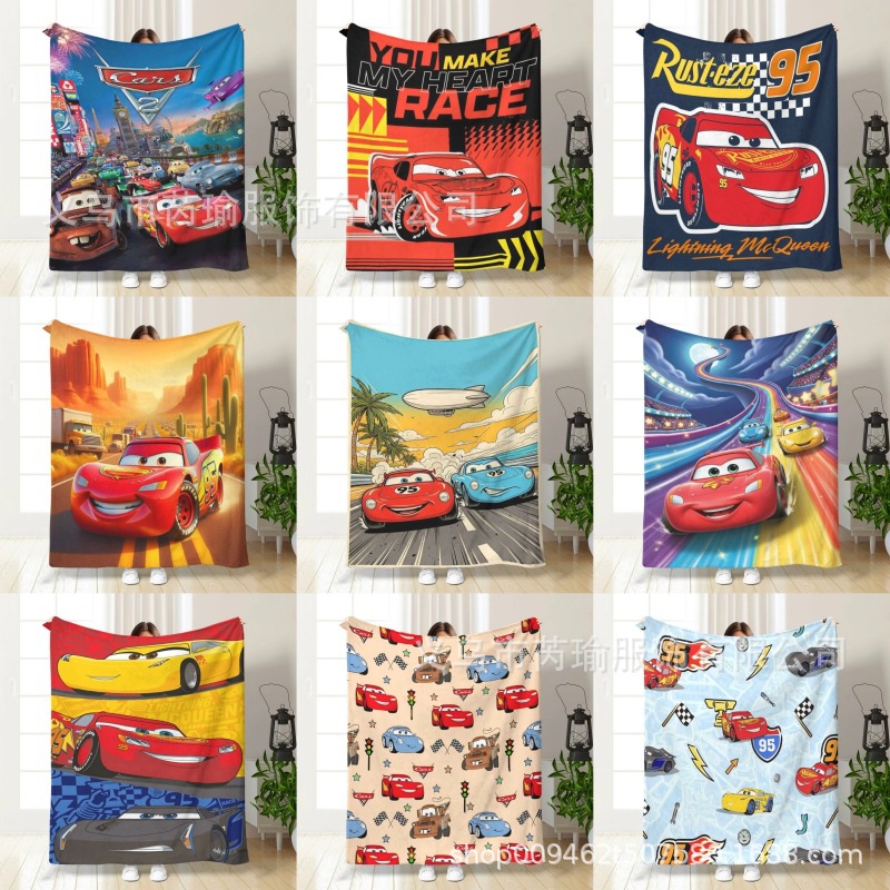 跨境闪电麦昆法兰绒印花毛毯动漫周边毯子卡通赛车盖毯儿童沙发毯