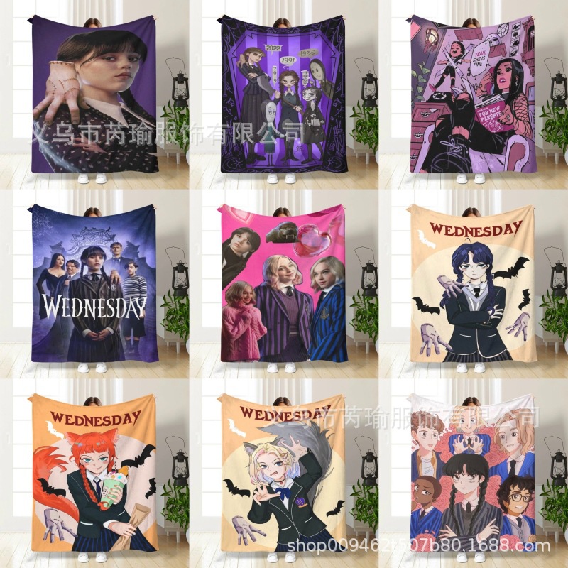 跨境美剧星期三毛毯Wednesday主题法兰绒毯印花家居沙发午睡盖毯