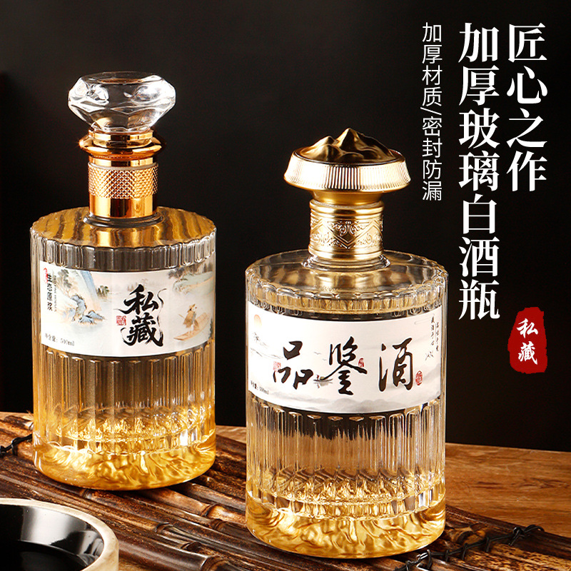 高档礼盒白酒瓶 一斤装晶白料透明玻璃空酒瓶 全套通用中国风酒瓶