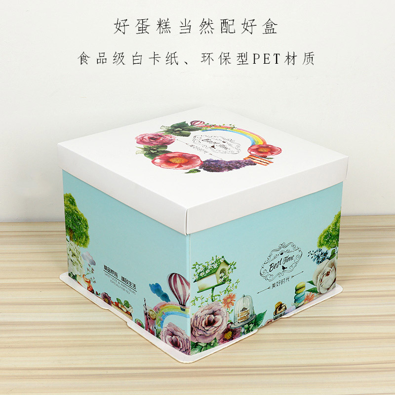 一次性手提生日蛋糕盒6寸8寸10寸12寸方形纸盒创意潮流英文包装盒