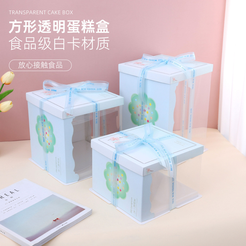 方形半透明蛋糕盒多尺寸PET加高烘焙包装盒蓝色加厚生日蛋糕盒
