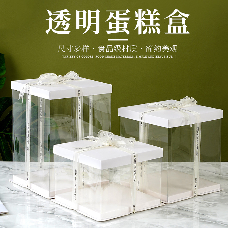 透明生日蛋糕盒子6寸硬塑料白色加高三合一烘焙包装盒蛋糕盒批发
