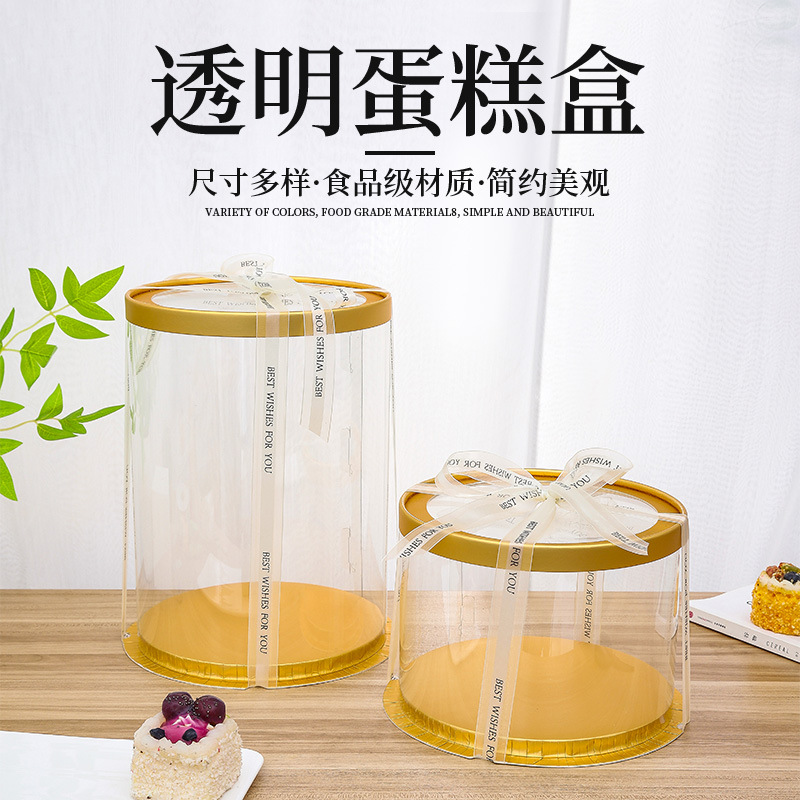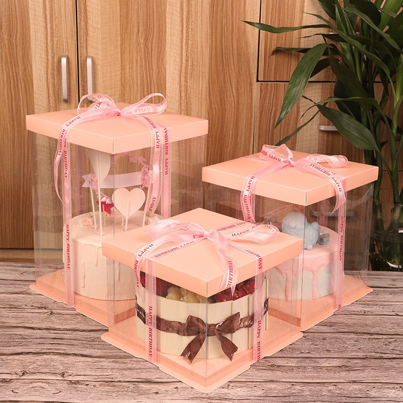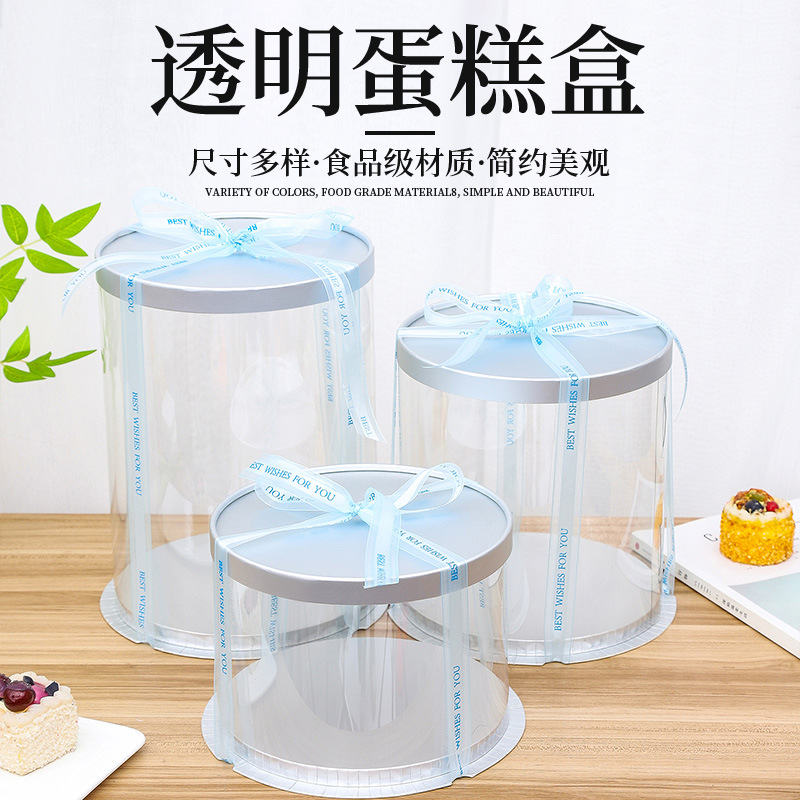 新款透明蛋糕盒三合一多尺寸烘焙包装4 6 8寸圆形生日蛋糕盒批发