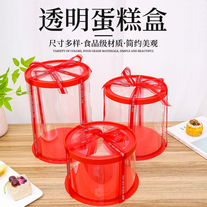 加高生日蛋糕盒红色透明圓形单双高三合一烘焙包装圆筒打包盒批发