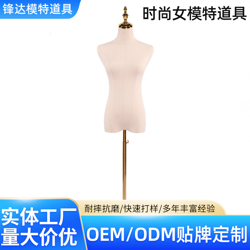 厂家直供泡沫包布模特米色服装店模特展示架女半身橱窗模特道具