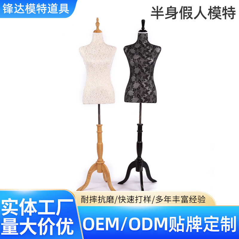 新款半身模特道具 黑白色蕾丝边半身假人模特 橱窗服装展示架道具