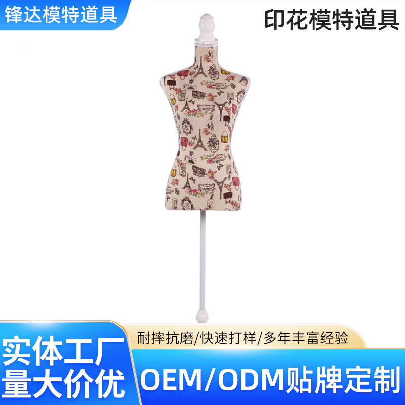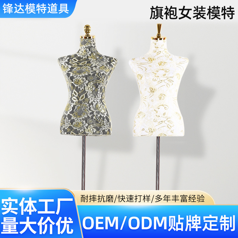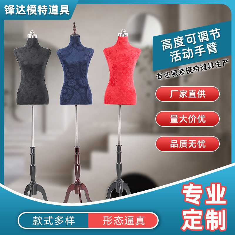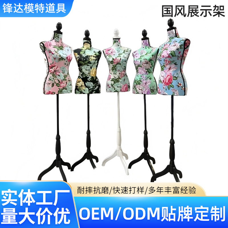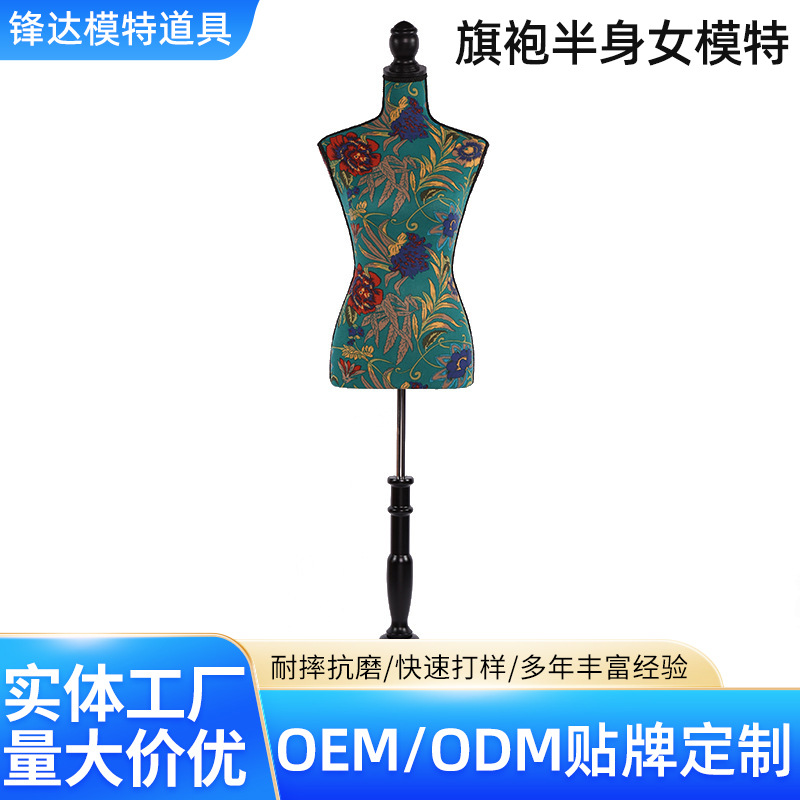旗袍半身女模特道具批发 服装拍摄展示架 无头半身绒布印花模特