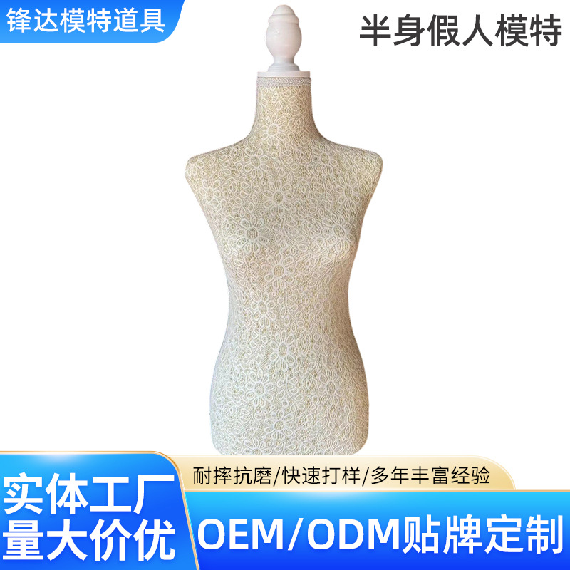 新款包布半身模特 黑白色蕾丝边半身假人模特 橱窗服装展示道具